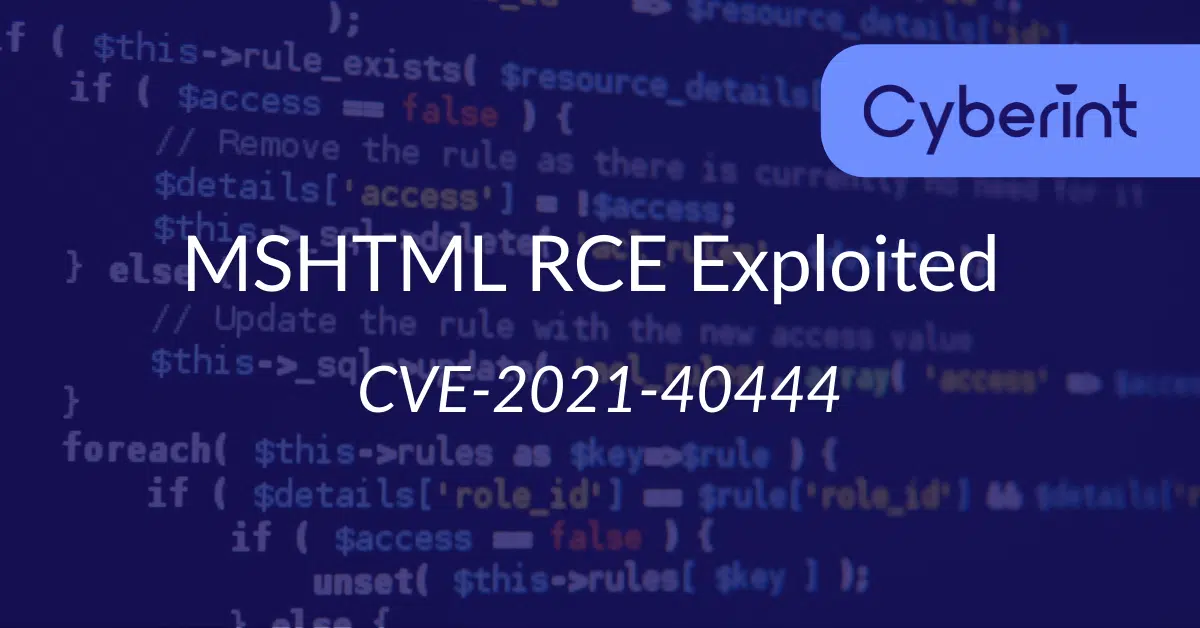Identified as CVE-2021-40444, assigned a CVSS score of 8.8, it is understood that the vulnerability has been exploited through the delivery of a weaponized Microsoft Office document utilizing an ActiveX control to download a remote malicious payload that is subsequently executed on the victim machine.