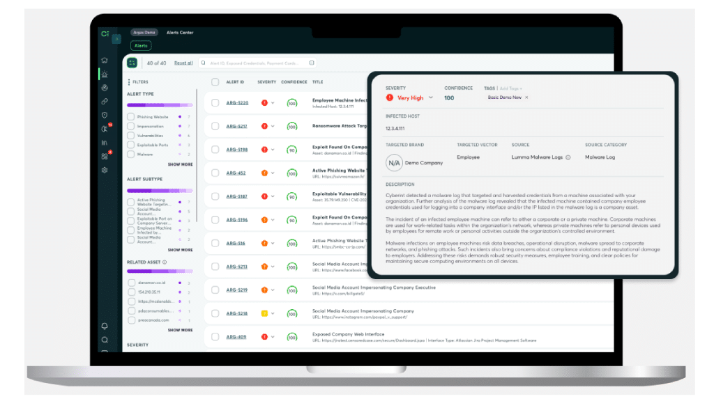 Cyberint continuously discovers the open, deep and dark web to detect all of the external IT assets in a customer’s digital footprint. The process is fully automated and passive so it does not actively validate or test any security controls. The discovery process will not “set off any alarm bells” or give security teams the impression an attack is underway. There is no impact on normal operations.